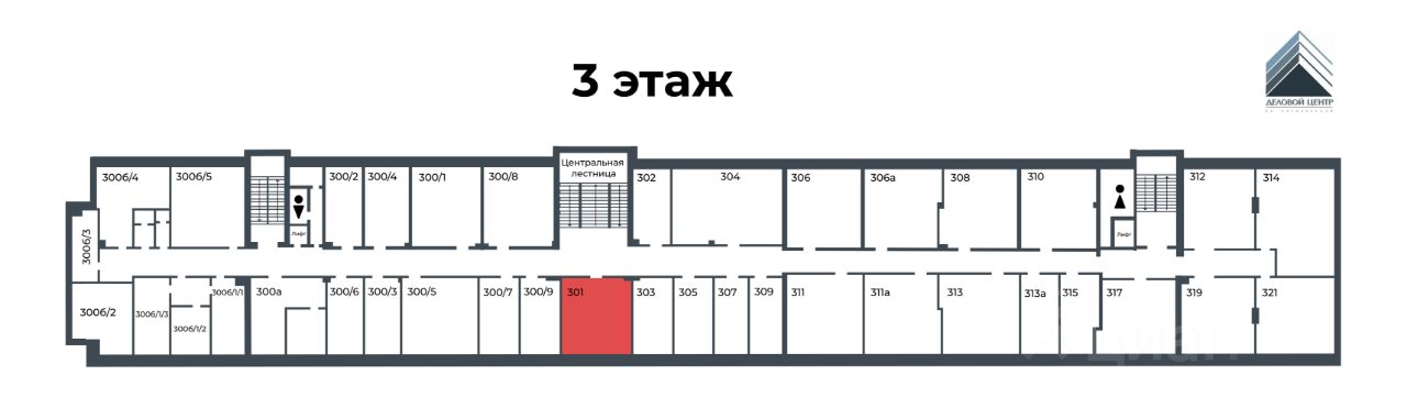 Сдаётся в аренду светлый офис площадью 34,5 м² на 3 этаже современного Делового центра класса B.