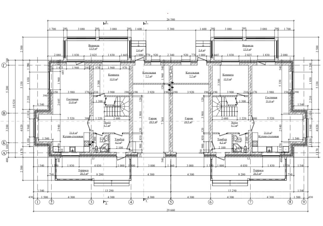 В доме 4 спальни, 3 санузла, кабинет, кухня-гостиная, гараж, котельная.